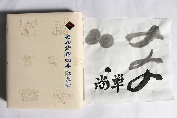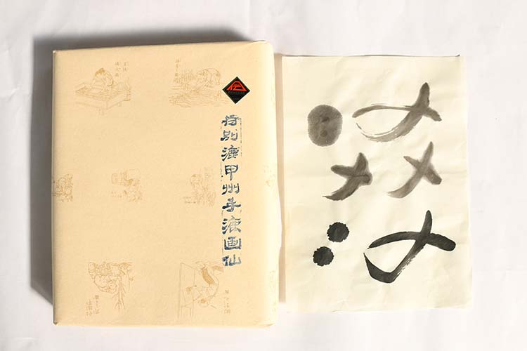 浙江省産、ニジミ少ない、筆にやや抵抗感がある書き味のある紙の表現が綺麗に出ます、清書・作品用としてお薦めです。