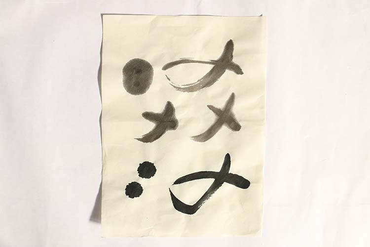山梨産、バナナの幹を原料にした画仙、ニジミ少なく発墨の面白い新商です。