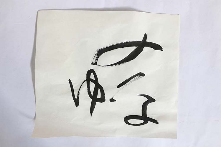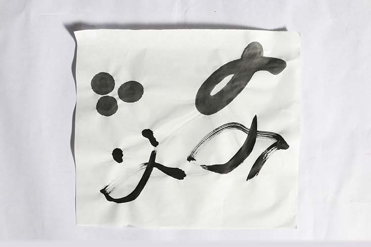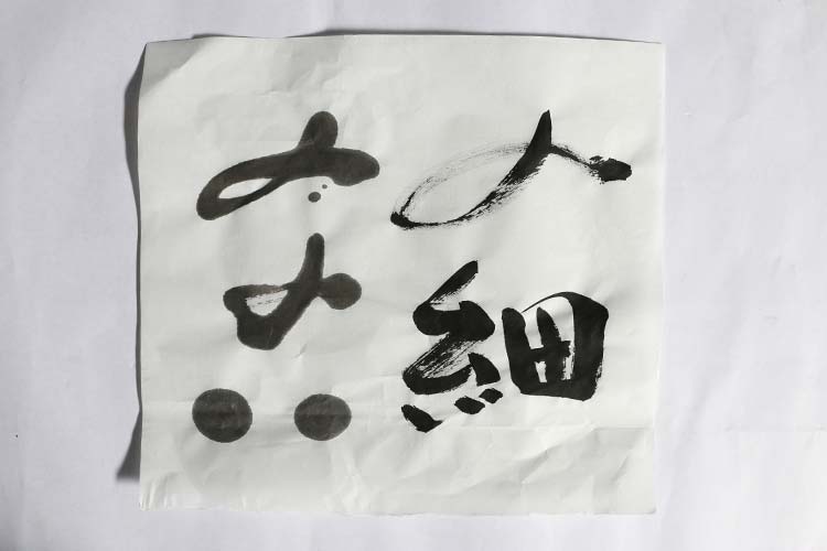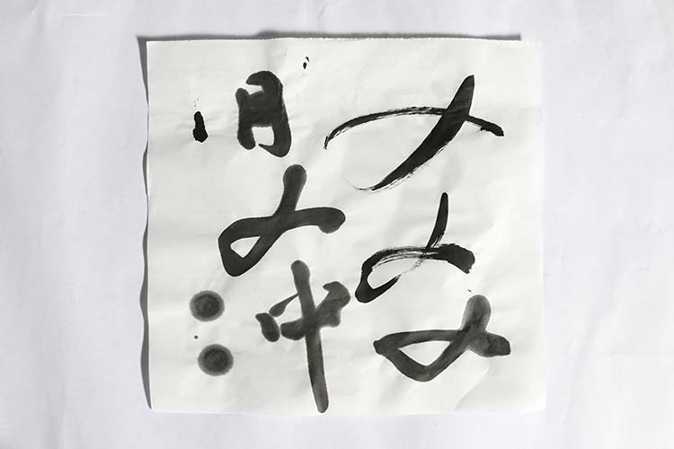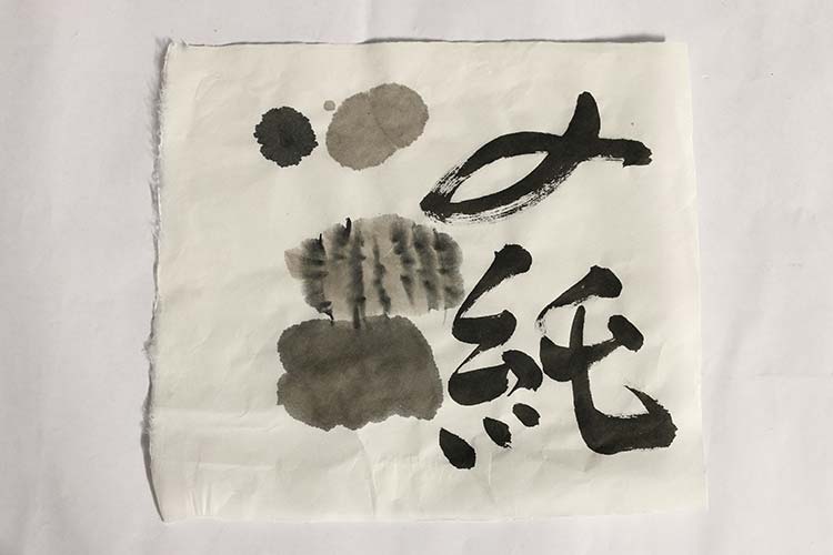 山梨産、バナナの幹の皮を主原料に画仙紙を漉いた、ニジミが少なく仮名用漢字用どちらにも適した紙です、墨色が面白い。