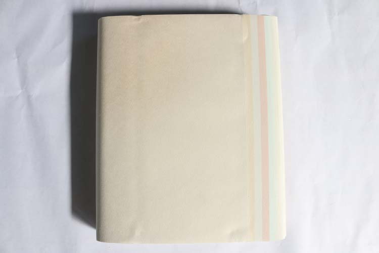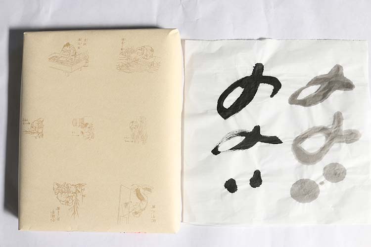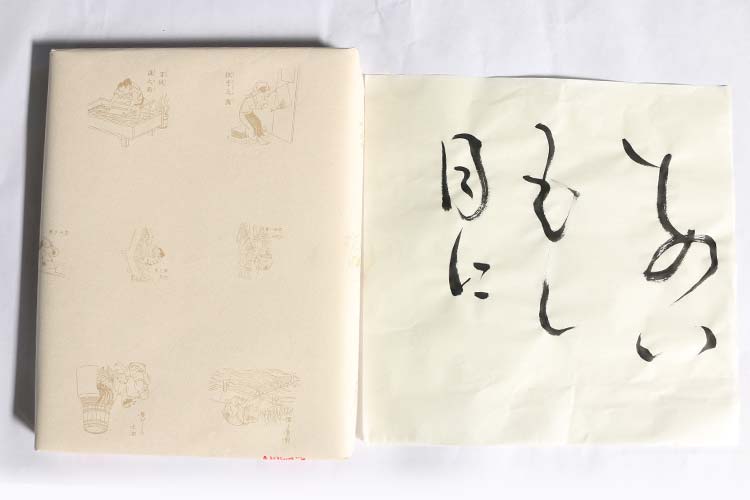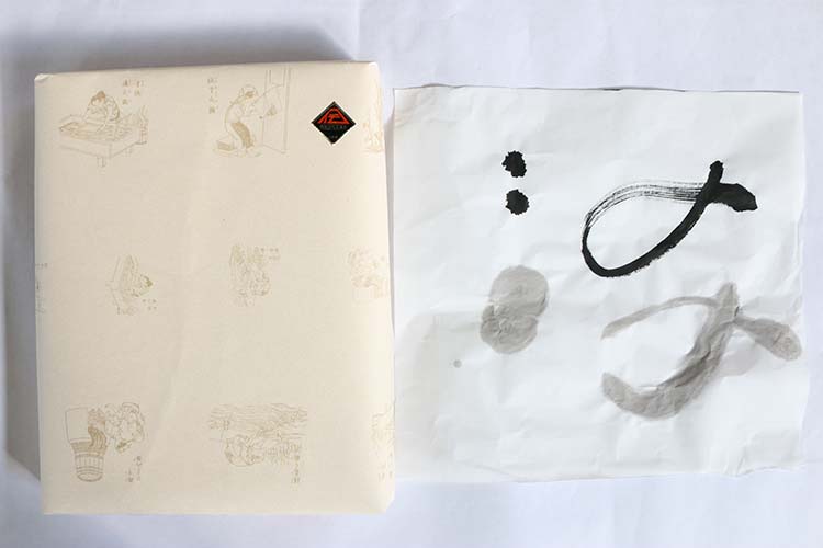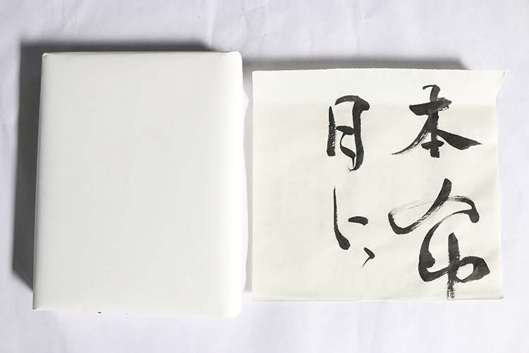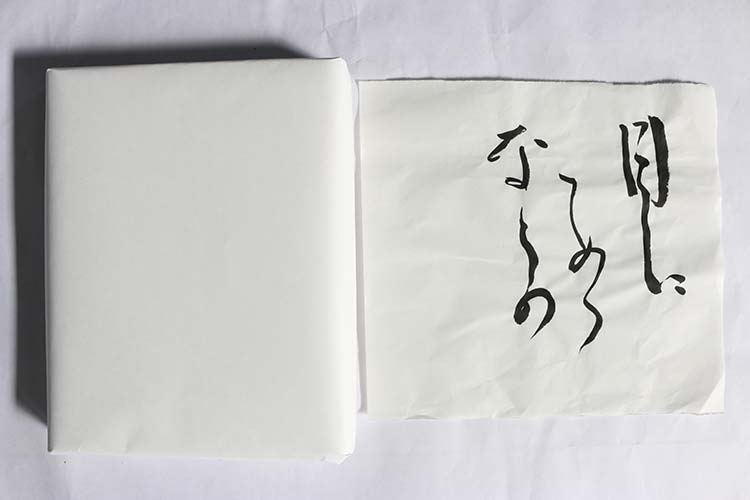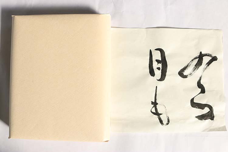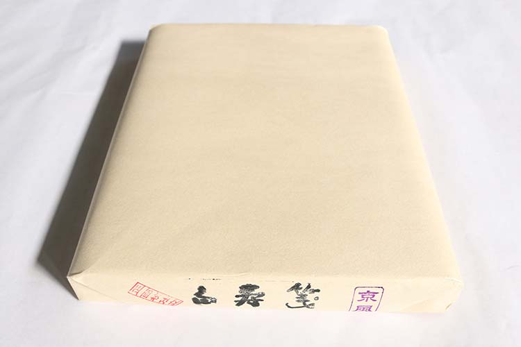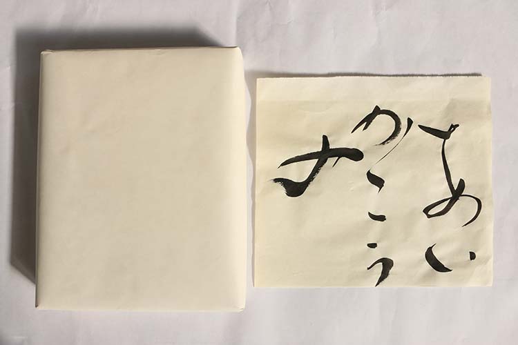 浙江省産、楮・SPパルプ配合、ニジミの少ないかな用筆にやや抵抗感がある書き味の紙、かすれの表現が綺麗に出ます、清書・作品用としておすすめです。