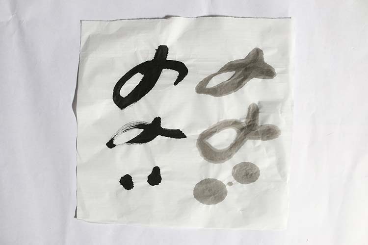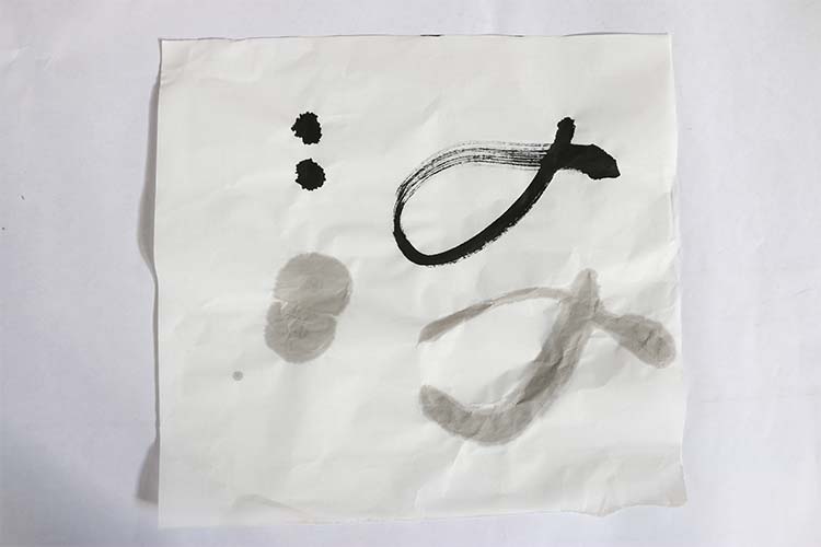 ニジミ無し 、国内で膠加工少した紙、紙が硬いが、墨色変化が面白いです。